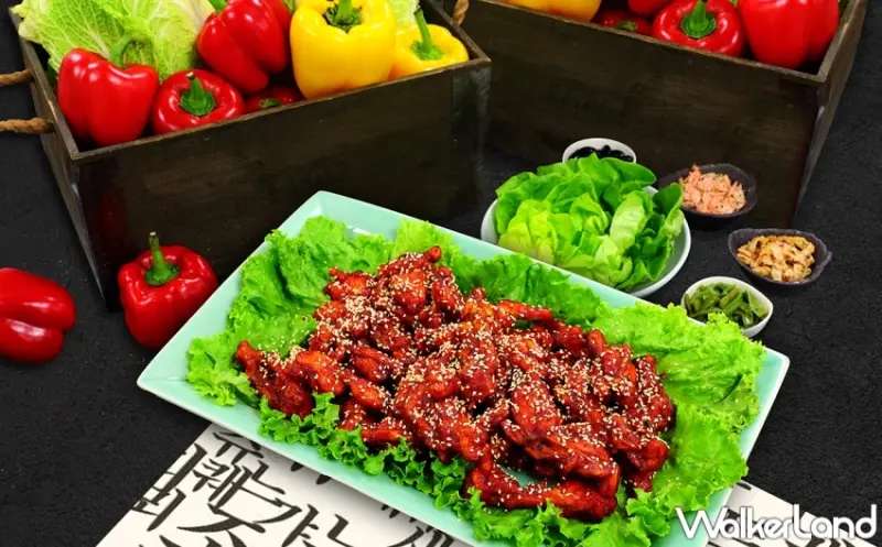 本次「韓食狂想曲k-food축제」吃到飽活動,由星級主廚親自備料下廚,推出十多種韓國風味美食,加上原本八大廚房各式冷盤、熱食、甜點,不用飛出國就可以品嚐到韓國傳統道地的美味佳餚及各式精選料理。其中,首推「韓式炸田雞腿」將田雞腿放入油鍋中炸熟,並以主廚特製韓味醬料慢火拌炒,田雞鮮嫩口感滑順,味道香醇美味。![]()