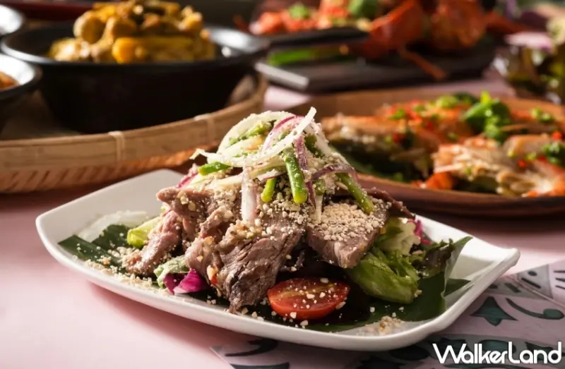 此外,最具泰北風味的瀑布牛肉,先將牛肉烤至5分熟,搭配多種辛香料一同涼拌,最後灑上搗碎的香烤糯米,酸甜帶辣的滋味更襯牛肉香氣,一秒喚醒味蕾。