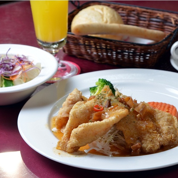 - 主廚創意特餐:奧爾良沙朗牛排、普羅風味烤羊排、香草豬助排、百里香風味烤春雞/附餐飲料:蔓越莓、柳橙汁、咖啡、柚子茶