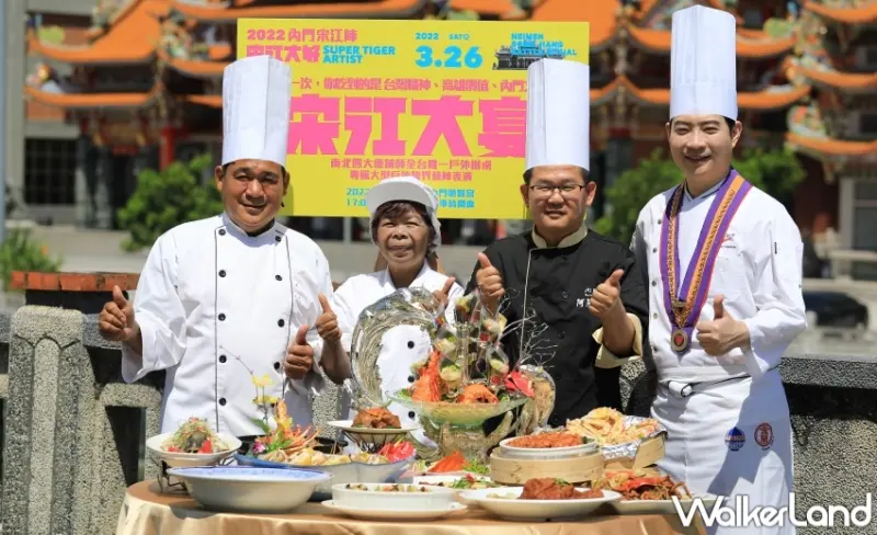 老饕們久等了!高雄內門宋江陣回來了,南北4大主廚強強聯手「宋江大宴」辦桌料理,將於3月26日在內門順賢宮重磅登場,現場除了可以看精彩藝陣表演吃傳統總舖師料理之外,高市府觀光局加碼舉辦封肉大胃王比賽,決賽時吃贏正妹大胃王關主,即可獲得5萬元高額獎金。
