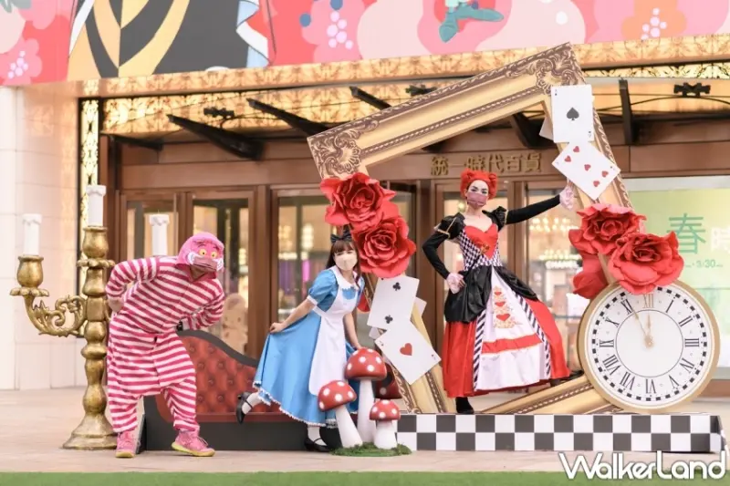 粉奇妙野餐派對活動入口處以兔子先生懷錶形象打造「夢遊時光隧道」迎接粉絲們走進這場奇幻派對,還有以紅心皇后的迷宮花園發想的「花漾鳥籠」、「瘋狂午茶派對」等,浪漫唯美超好拍。並且,延續以往,以粉紅為主題,全館打造出許多裝置藝術,在1樓的時代廣場,布置出充滿日式庭園風的夢幻粉紅花園,以及魔幻相框。而1樓時代光廊前方設置奇幻童話風格的WONDERLAND場景,可作為民眾絕佳約會、拍照打卡景點。