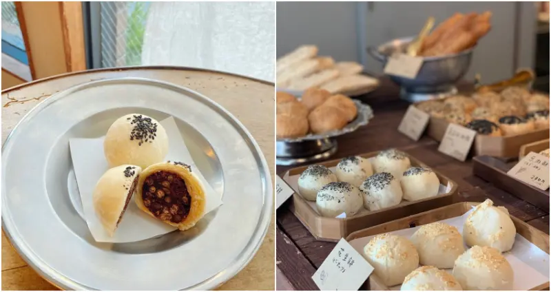 除此之外,店內還有一項在台灣才能找到的食物,就是一顆顆圓滾滾的「甜酥餅」,有紅豆、芋頭、花生等口味,如果喜歡鹹的口味,還有韭菜酥餅可以選擇,每顆切開來就能看到超級飽滿的餡料,非常有誠意!吃下去之後再配一口冰冰涼涼的傳統豆漿,這香甜又滑順的口感,讓人直接登上味覺巔峰。