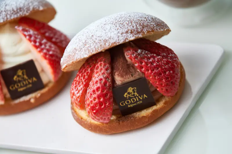 人氣品項鮮生乳包也放入了草莓果肉,搭配甜甜的牛奶巧克力與黑巧克力鮮奶油,想到都令人忍不住垂涎三尺。此外,Godiva行政總廚所原創的「巧克力戚風蛋糕」也將同步在這份春季菜單亮相。