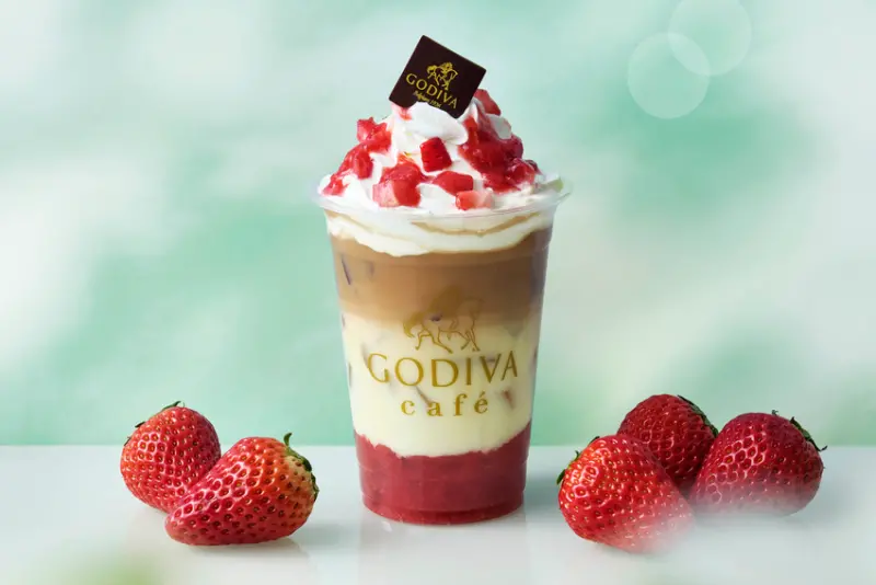 來自比利時的皇家巧克力GODIVA,因為相當深受日本人喜愛,所以在2020年11月26日當天,初次以嶄新的咖啡廳型態在東京車站推出首間「GODIVA café」,為的就是要讓更多的愛好者們可以悠閒坐在室內,品嚐以濃厚巧克力為主角的甜點時光。GODIVA café近期公布了4月份的全新甜點菜單,幾乎每一項都加入了草莓元素,將一口氣攻佔草莓控、巧克力的荷包。菜單當中最吸引人的莫過於「GODIVA草莓白巧克力伯爵飲」,不只漸層賣相甜美誘人,又融合了酸甜的草莓醬、白巧克力以及清新的伯爵茶香味,最後還在最上層的鮮奶油上放了不少草莓果肉,可說是誠意滿滿。![]()