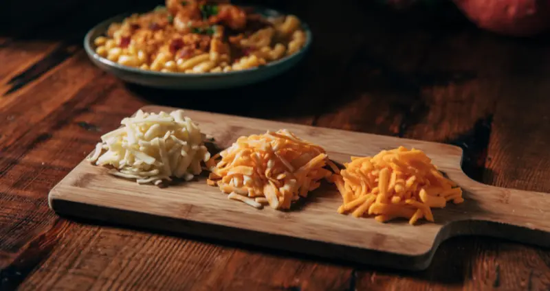 麵中使用大量來自於黃金加州的乳源,包含加州紅切達乳酪、加州莫札瑞拉乳酪,還有只有美國才生產的「加州寇比傑克乳酪」,讓三種起司的美味層次彼此交疊。