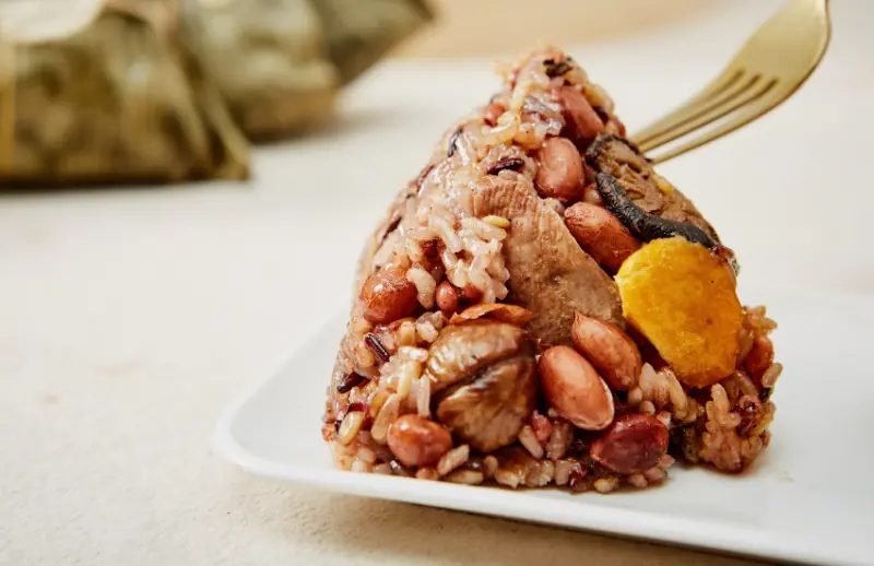 取代傳統用白糯米包粽子的料理配方,以熱量較低更營養且好吃的五穀米混搭糯米,不僅健康養生外,五穀米的獨特香氣,再加上芋頭的甜、栗子的鬆、花生的香,混搭起來的多層次香風味,是今年最棒肉粽的新首選。