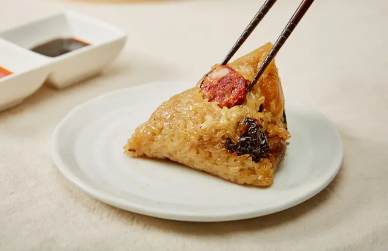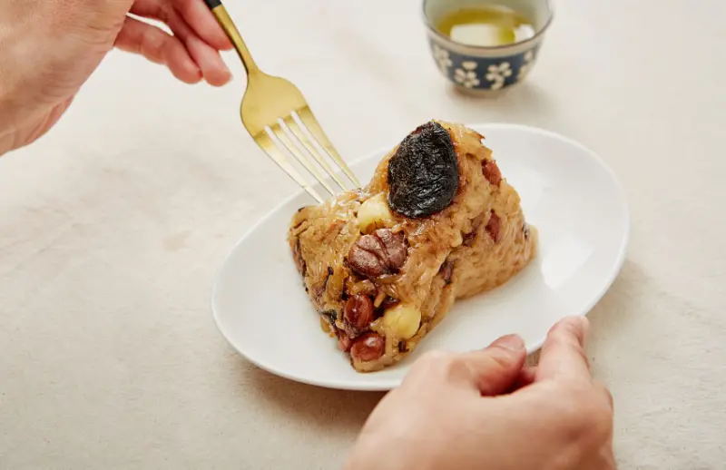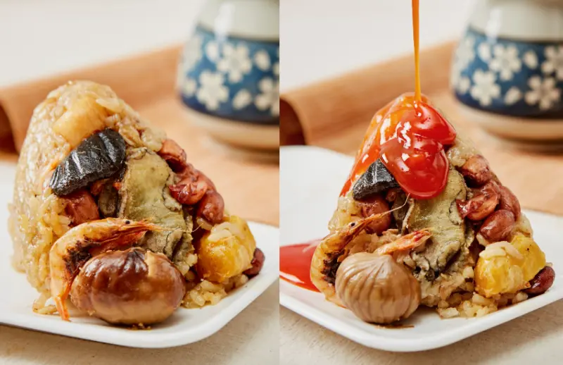 以獨家秘密煮法更讓每塊雞肉及香菇、栗子等配料,一剝開粽葉就散發出甘、醇、香的絕妙美味,入口時粒粒分明的口感,絕對值得一嚐。