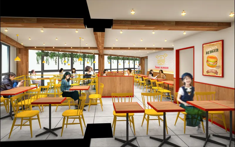 「TORIKI BURGER鳥貴族漢堡」的1號店已於2021年8月23日開幕,店面坐落在距離東京JR大井町站東口附近,整間店的裝潢以白色與黃色為主要色調,招牌上的「羽毛漢堡」商標則相當吸睛,設計的理念是希望可以讓這對翅膀帶著這個品牌飛向全世界,同時往下垂的起司就好像是雞的鳥喙,既簡潔又具有設計感,讓人看了從此印象深刻。除此之外,如果是傑尼斯的粉絲應該早有耳聞,身為「關8」成員之一的大倉忠義父親「大倉忠司」就是鳥貴族的社長,因此經常有粉絲以「繳稅」名義到鳥貴族分店消費以表支持。![]()