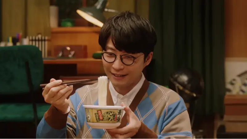 只見星野源依舊坐在自己的位置上,享用著又粗又Q彈的麵條,而美輪明宏則是淡定坐在星野源的對面,不斷說著「最&強」兩字台詞,一方面是要強調麵條口感所向披靡,另一方面則是雙關帶到自己也是身為日本「最強」的都市傳說。