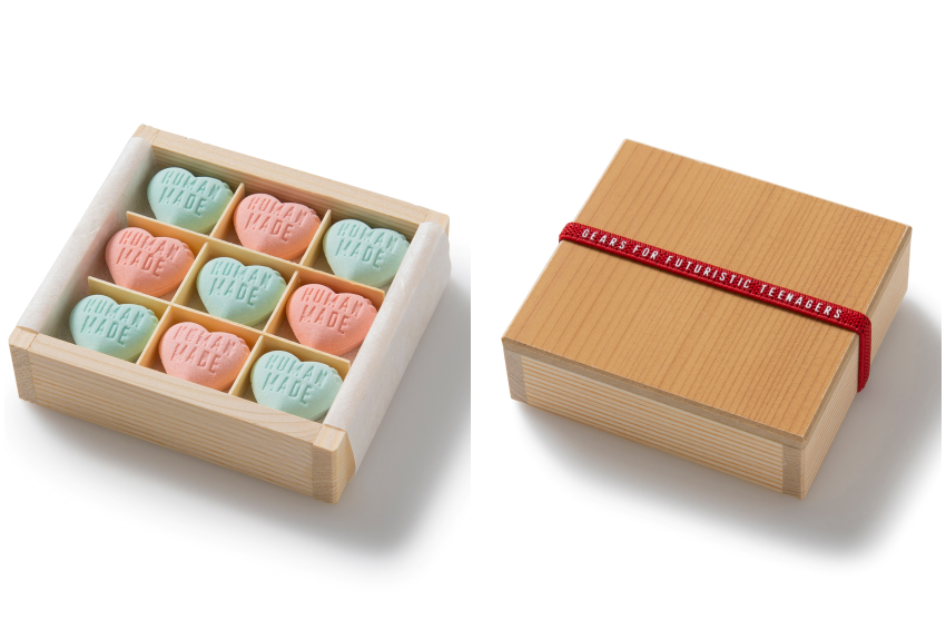 為紀念「HUMAN MADE 1928 Cafe by Blue Bottle Coffee」開幕,「HUMAN MADE 1928」與京都祗園的和菓子品牌「鍵善良房」共同開發了愛心和三盆糖果,顏色分別使用了代表HUMAN MADE的紅色與代表藍瓶的藍色,送禮自用都合宜。