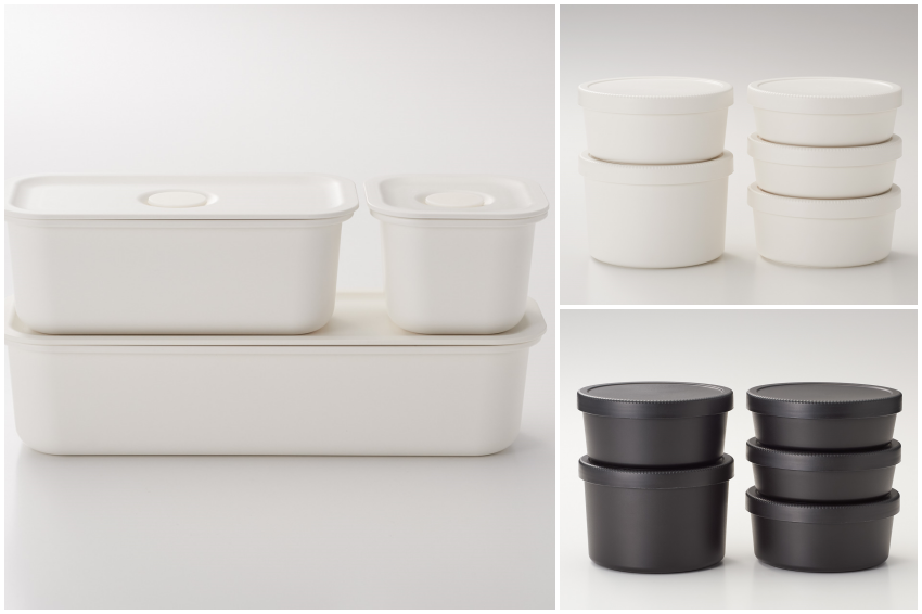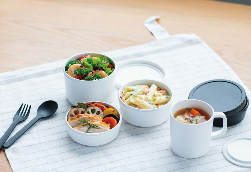 ▲聚丙烯密閉式便當盒和聚丙烯旋帽圓形便當盒共有兩色與不同尺寸,左為密閉式便當盒(白)、右上為旋帽圓形便當盒(白)、右下為旋帽圓形便當盒(黑)。