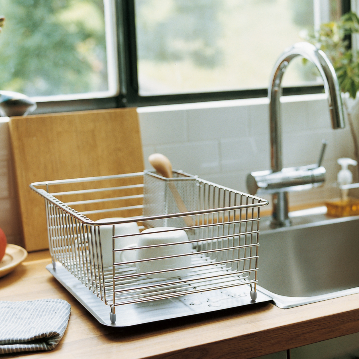飯後清潔全家人的碗盤,卻經常發現數量太多,沒地方擺放晾乾嗎?MUJI無印良品推出的不鏽鋼瀝水籃,翻面即可改變排水流向的設計,也適合不同大小的洗水槽,如果再搭配傾斜式托盤,將可營造更多空間放置待乾的碗盤!