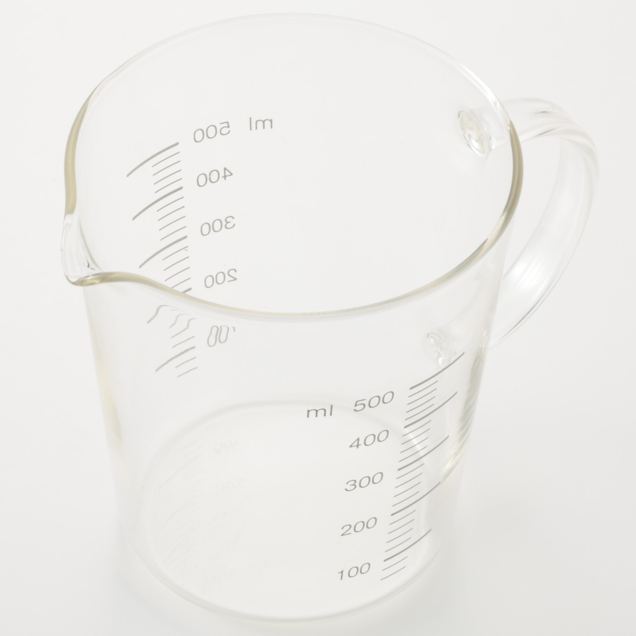 與塑膠製品相比,耐熱玻璃量杯較為堅硬,在清洗時較少產生刮痕,也不容易吸附食材氣味,且透明玻璃在觀察份量時非常方便,很適合盛裝湯類或調味料等味道較重的食材。這款玻璃量杯可顯示容量至500ml,滿水則約為690ml,拿起來輕巧,甚至還可作為盛裝水果的器皿使用呢!