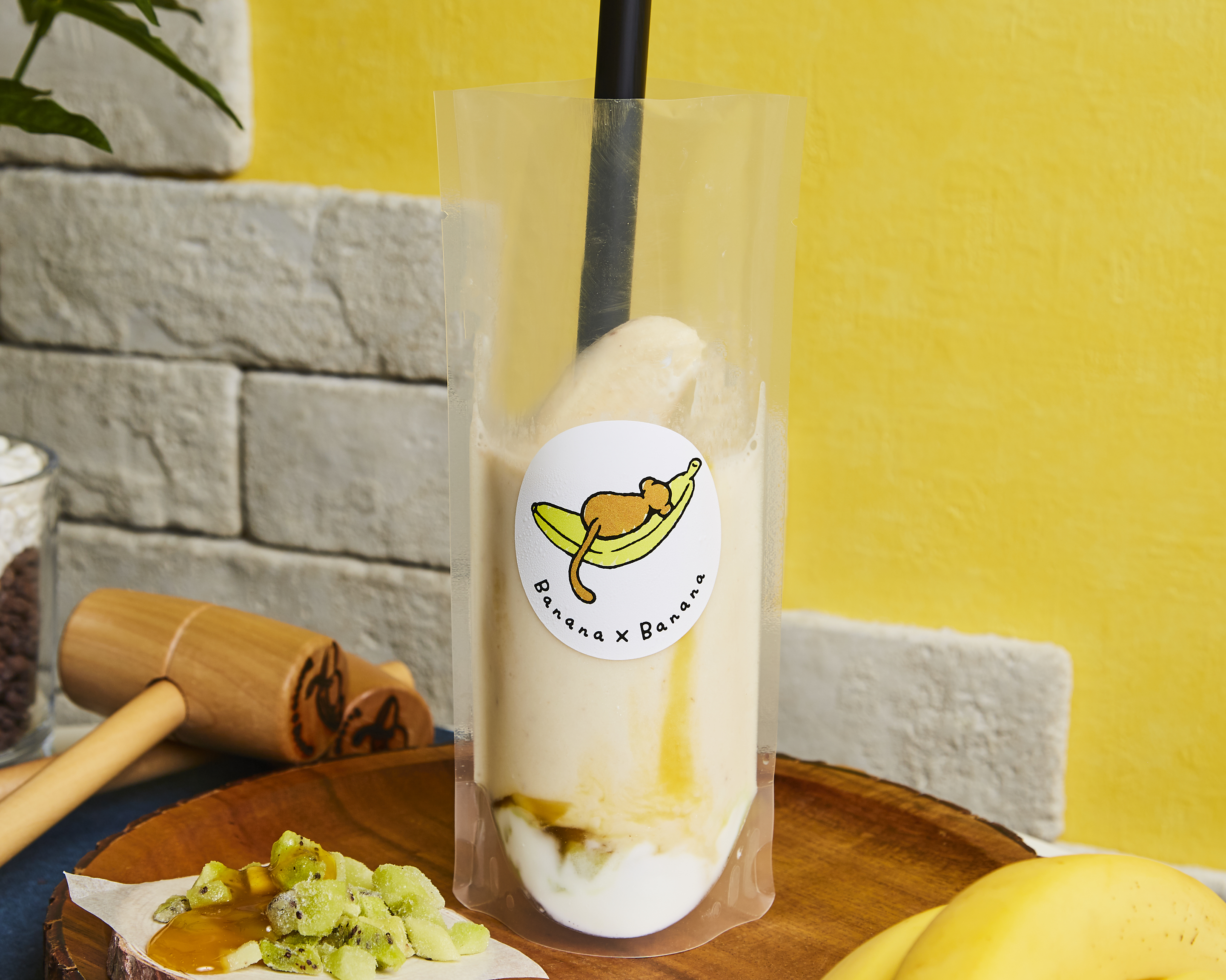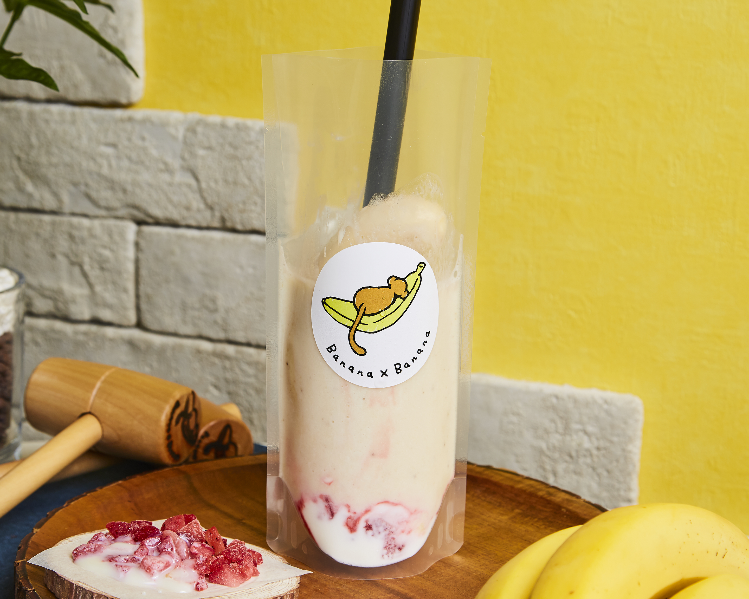 二號店特設了「專用槌」和「專用台」,來店消費的顧客從店員手中接過香蕉汁冰沙以後,可以親自把冰沙放上專用台,以專用槌敲軟。在過程中,也可以拍照、攝影,放上Instagram等社交平台,非常有趣!