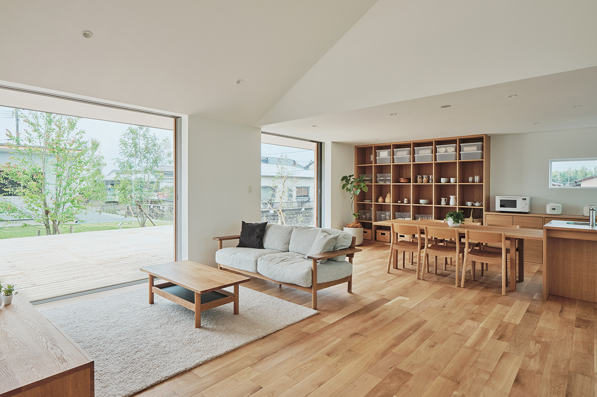 有別於前2棟建築的陽之屋,採平房的模式,坐擁寬廣的庭園,更透過大面積的窗戶延伸視覺,及高約3.9公尺的天花板打造寬敞感,共創開放感的室內空間。自行規劃客廳、廚房、寢室等空間大小,打造符合個人喜好的居住環境。