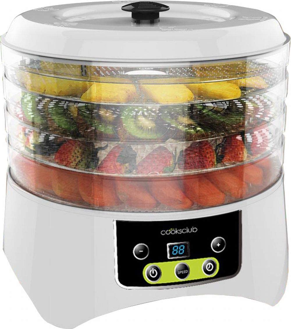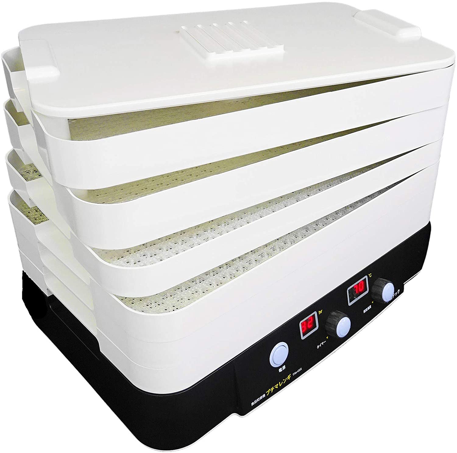 這一款由日本老牌廠商「東明Tech」製造,在品質上更有保障。尺寸約32×45×32公分,重量約5.7公斤。由於體積較大,電力消耗也較高,但是最高共可以容納15層托盤。溫度調整介於35~75度之間。不同於其他品牌,東明Tech的食品乾燥機設有保護裝置,托盤和蓋子為塑膠製,可防止漏電和觸電,更為安全。在日本亞馬遜評價非常高,許多人不只會製作果乾,也會拿來加熱肉片,給家中狗狗吃。價格約23,773日幣,但由於入選了Amazon's Choice,品質更為優良,使用上更能令人放心哦。