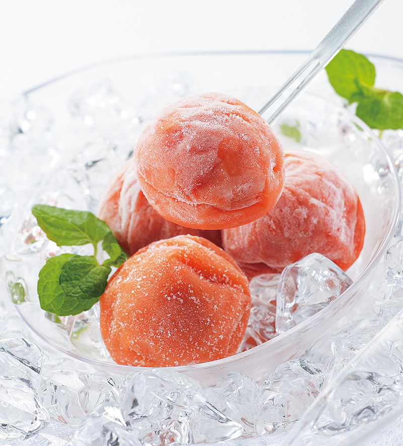 不同於一般的梅干,這款梅干經過冷凍,吃起來沁涼消暑。鹽分約2.5%左右,酸味和甜味恰到好處。價格3,780日幣。