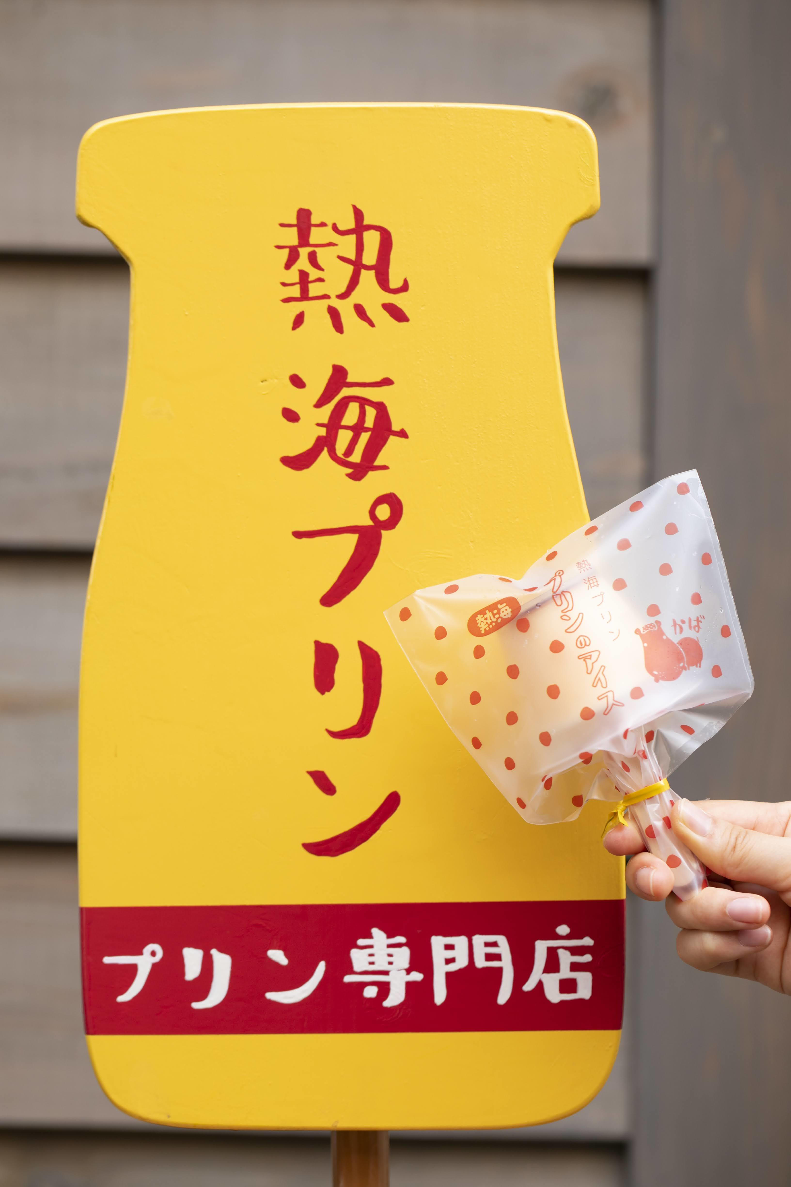 以溫泉大浴場為主題的布丁專賣店「熱海布丁(熱海プリン)」,招牌為仿造古早牛奶玻璃瓶設計的濃厚雞蛋布丁,口感滑順、造型可愛,立刻成為當地最火紅的甜點。隨著炎熱的夏天到來,去年廣受好評的熱海布丁冰棒再度登場,這次也回應了多數客人的心願,特別推出了「熱海布丁冰棒組(プリンアイスセット)」,於2021年7月2日開始販售!