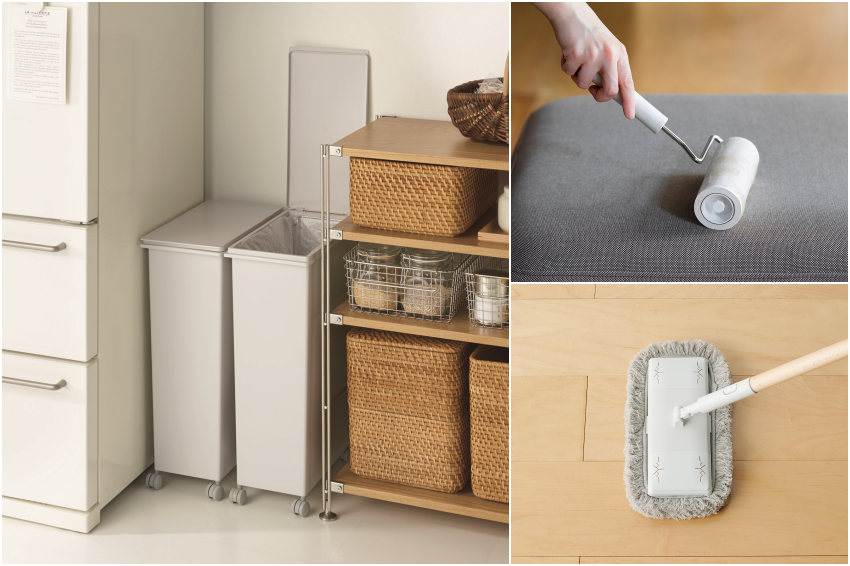 清除下來的垃圾也別忘了做好分類,MUJI無印良品有各種尺寸及材質的垃圾桶方便顧客挑選,尤其PP上蓋可選式垃圾桶有2種尺寸及5款上蓋形式可供挑選,不僅可放入狹窄的空間使用,內部的鋼製框架零件,也可分別掛上2個塑膠袋作為垃圾分類,讓順手的行為除了提升自身的舒適感,也能協助清潔人員的工作環境更舒適且順利。