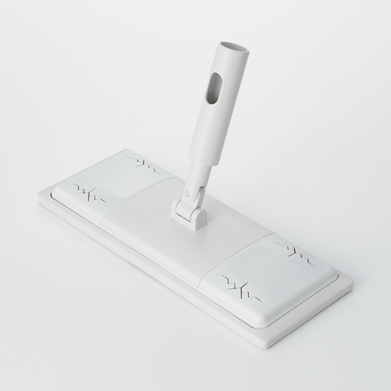 清掃地面時,可使用搭配使用「除塵拖把布」,利用微纖毛易於吸附髒污的特性進行大範圍除塵;在汙漬殘留的區域,再更換為「吸水拖把布」濕擦即可。