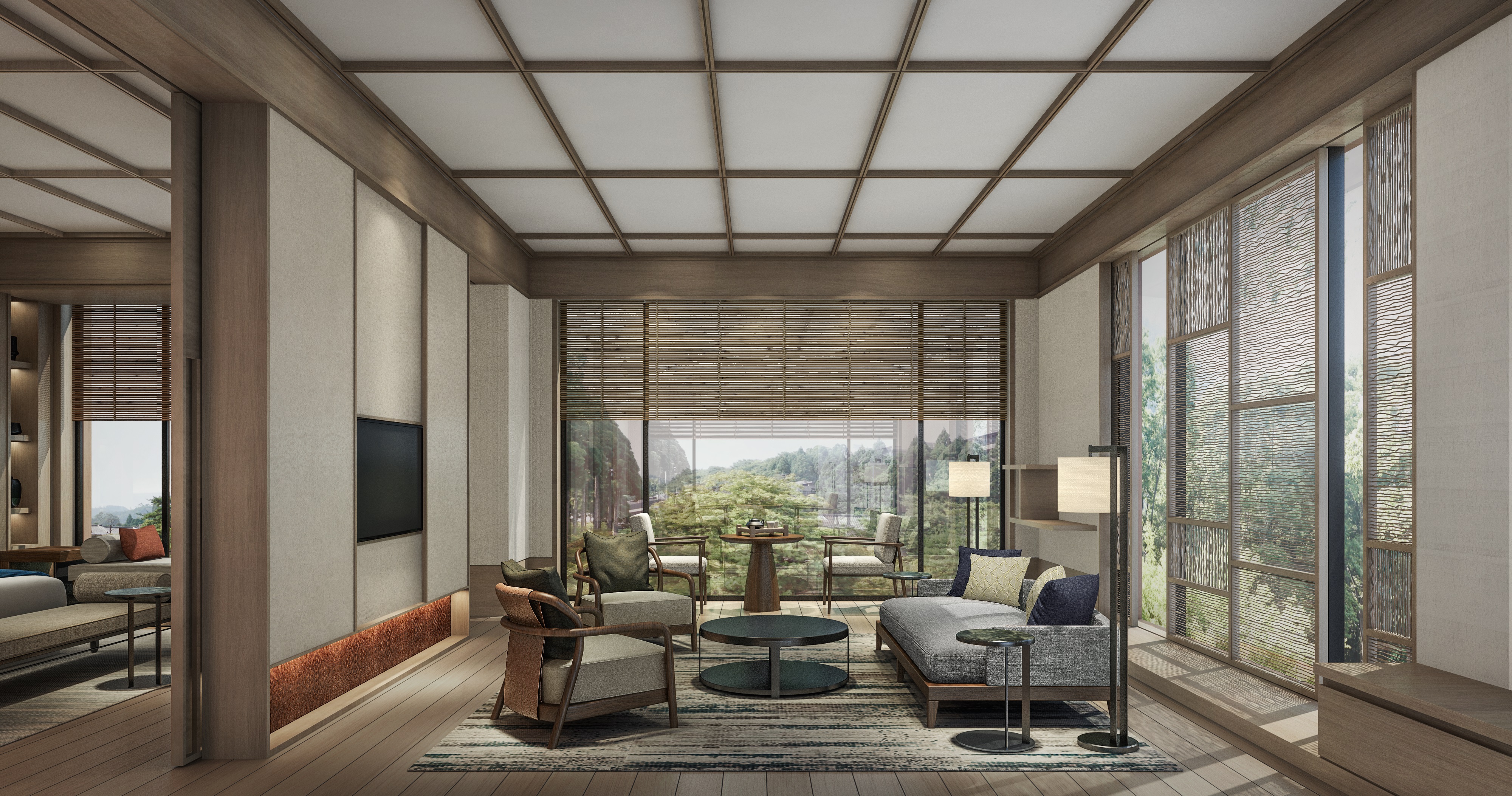 座落於京都鷹峯的ROKU KYOTO, LXR Hotels & Resorts,設置了114間客房,每間的平均面積為50平方公尺以上,空間寬敞舒適,房內的大片落地窗正面鷹峯地區的壯麗自然景色,可從房內將周邊自然美景盡收眼底。 其中,佔地100平方公尺的最高級套房有兩種,分別是能俯瞰天神川山麓的