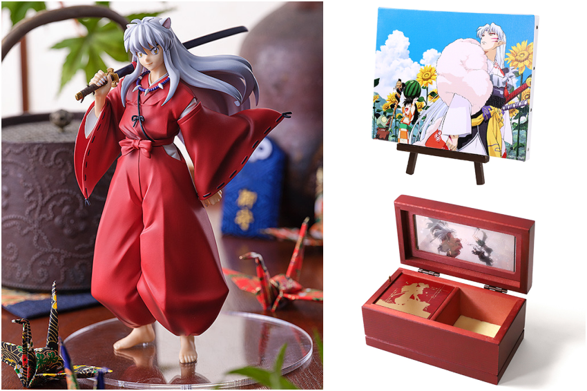 ▲現場販售精美犬夜叉公仔(左)、帆布畫板(右上)、「想いの果てに」音樂盒(右下)