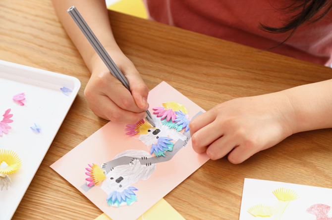原本無用的鉛筆屑如今搖身一變,成為妝點卡片的美麗裝飾!無論是大人小孩都能同享創作的樂趣,格外在防疫期間,最適合安排手作時間,消磨時間的同時,也製作卡片,向人傳遞溫暖。