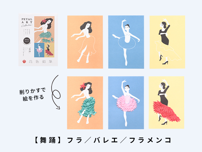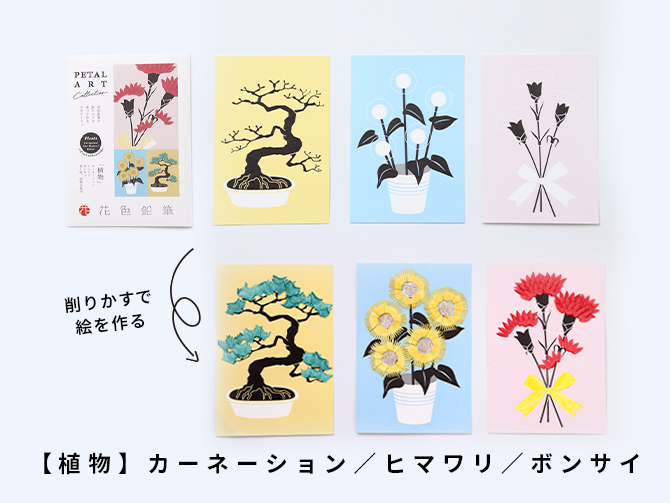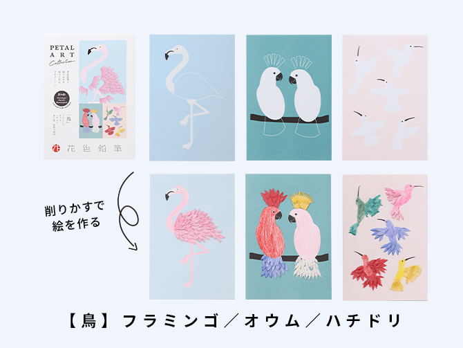 本次新登場的「花色鉛筆PETEL ART Collection」卡片組,提供多款插圖卡片,可將花色鉛筆削下來的鉛筆屑與卡片結合,製成一張立體小卡。