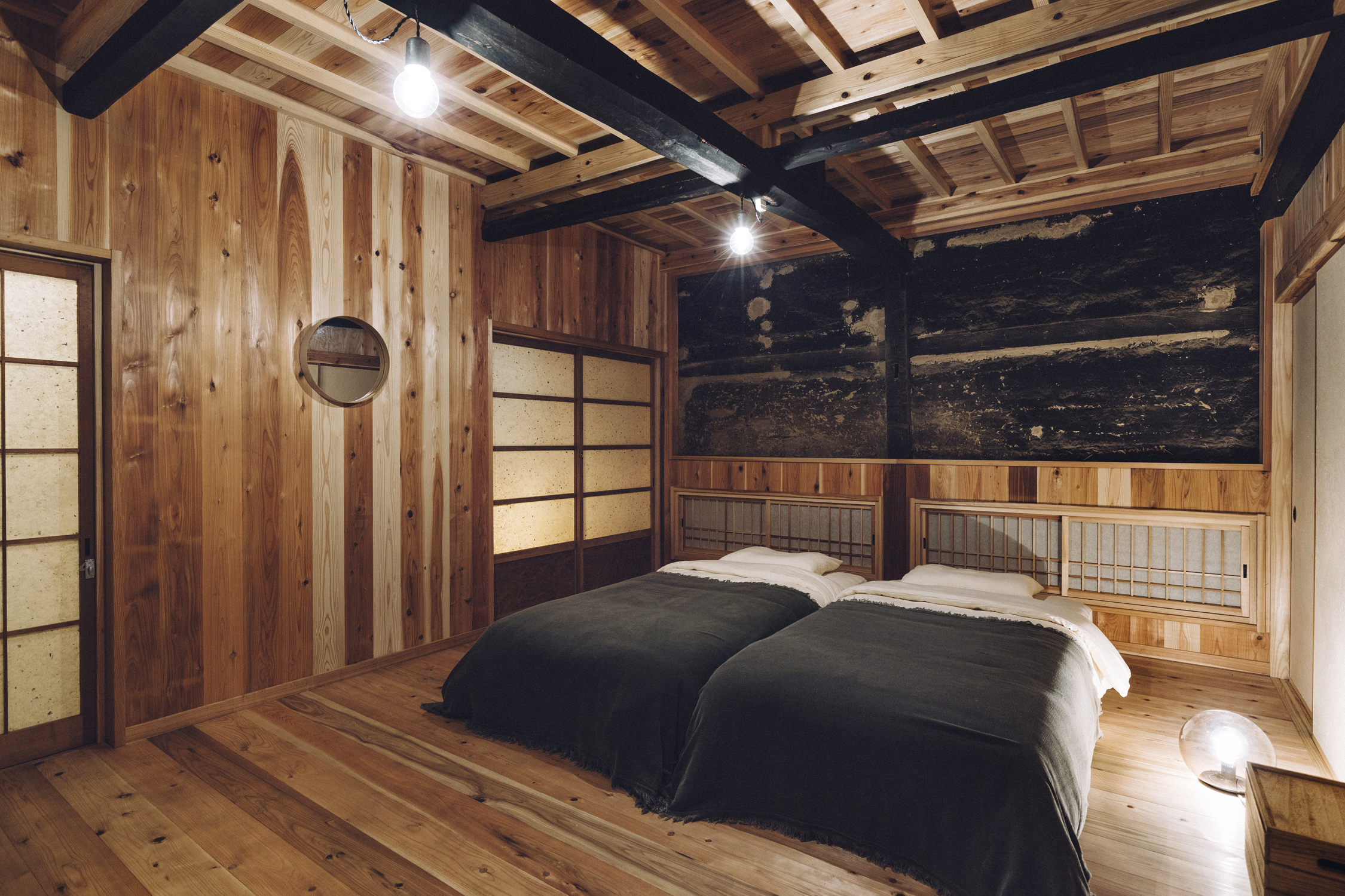 屋內保留了原有的木頭樑柱、木造拉門,並以釀酒老屋的看板、酒瓶作為屋內裝飾,營造出暖心的木頭和風空間。客房的部分舖設了榻榻米及木板兩種不同材質的地板,共3間客房,每間可容納2~4名旅客。若是家族同遊、員工旅遊等多人旅行,可包棟入住!