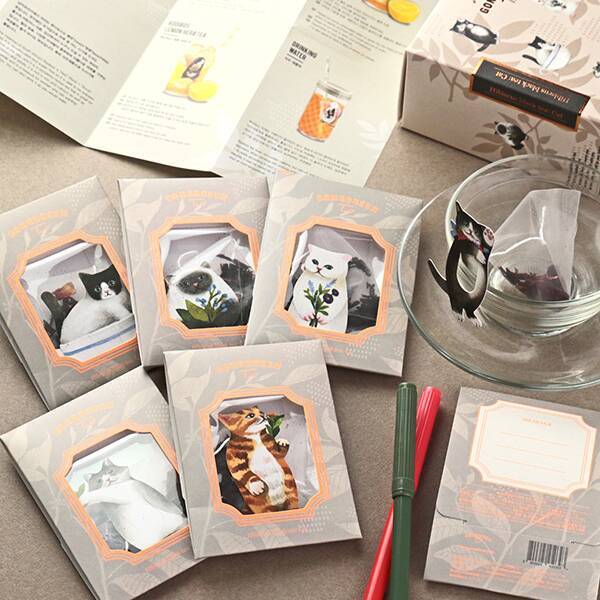 適合搭配蜂蜜一起享用的草本茶包,共有6款造型各異的貓咪包裝,每款包裝後還有可書寫留言的欄位,非常適合作為小禮物贈送。