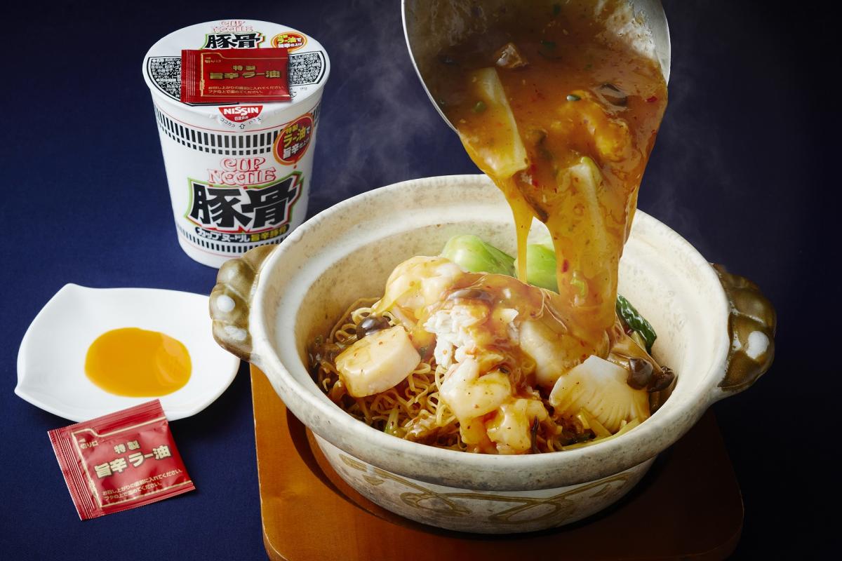 今年同樣迎來50週年的京王廣場大飯店攜手日清杯麵,,與飯店的西洋料理、日式料理、中華料理主廚共同推出餐點合作,以素有「日清杯麵八福神」之稱的八款超人氣泡麵入菜,研發出日清咖哩杯麵炒飯、日清杯麵豚骨風味海鮮土鍋、日清鹽味杯麵三明治等創新料理,分別於ALL DAY DINING「樹林」、和食料理餐廳「KAGARI(かがり)」、中國料理餐廳「南園」、自助吧「Glass 」、酒吧「BRIAN」販售。