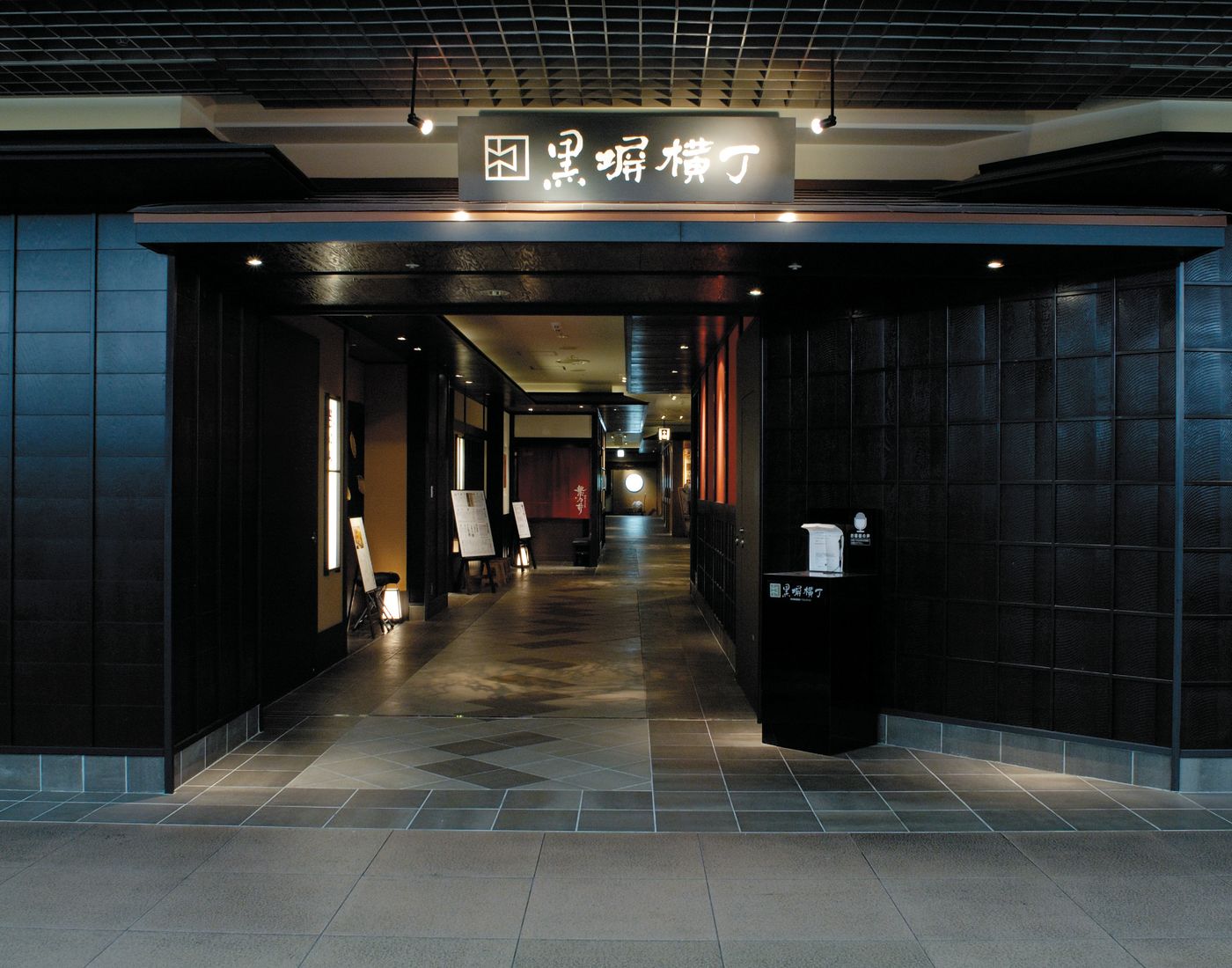 相較於燈光明亮的「Kitchen Street」,地下一樓的「黑塀橫丁」因滿是黑牆圍繞而得名,意思是「由黑色圍籬圍起的小路」,低調沉穩的設計充滿了優雅的日式氛圍,在這裡你可以找到壽司、串炸、米澤牛、居酒屋等傳統的日式料理,高價位與實惠價格的餐廳皆有,店內普遍會散發出溫暖的燈光,主要就是希望來訪顧客可以在這裡與好友、同事放鬆身心享用美食,因此成為不少上班族在辛苦一天之後慰勞自己的「深夜食堂」。