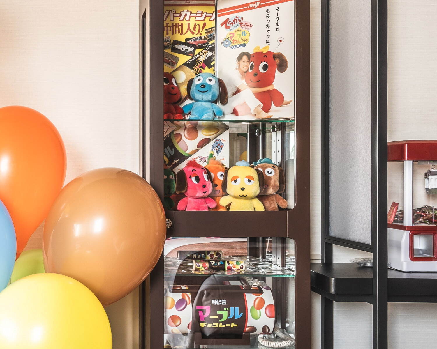 為了紀念誕生60週年,業者特別將Marble脆皮巧克力初期的復古海報、電話等搬進房內,讓人彷彿回到昭和年代般。此外,Marble脆皮巧克力的歷代電視廣告也將在本主題房公開,想必會勾起不少日本旅客的童年回憶。