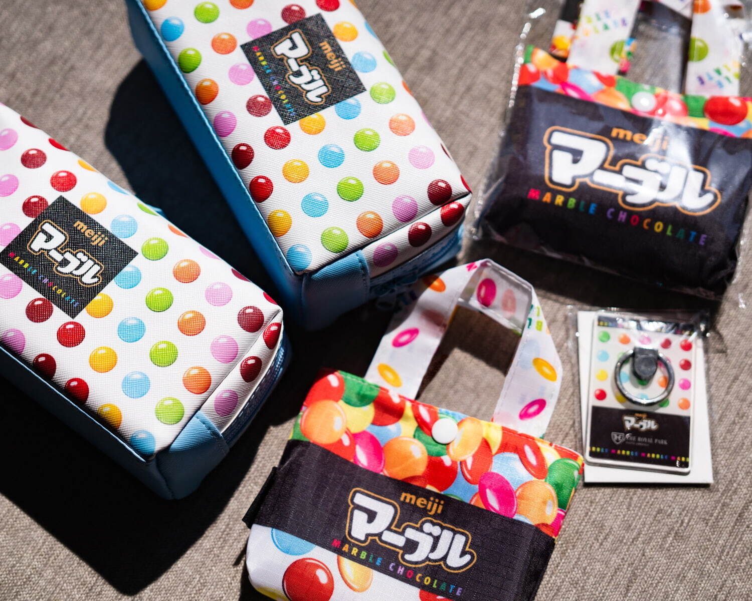 不僅房內擺設用心,業者也精心設計了限量週邊,以Marble脆皮巧克力為元素,推出了手機支架、環保購物袋、收納小包等,讓下榻旅客在返家後依然能回味Marble脆皮巧克力的繽紛世界。