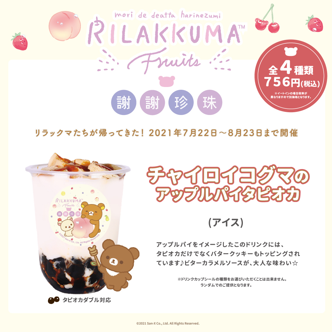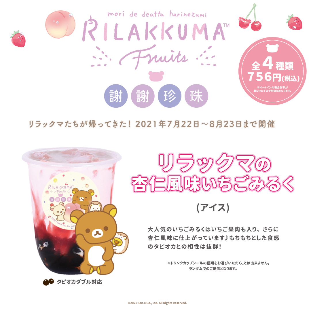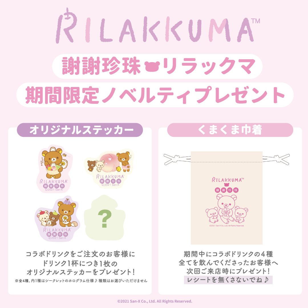 雖然珍珠奶茶發跡自台灣,但也有不少品牌從國外紅回台灣!這次和拉拉熊推出聯名款的「謝謝珍珠」就是來自日本的珍珠奶茶店。聯名活動已經從2021年7月22日開始,預計在8月23日結束。活動共推出了4種飲料和3種商品,當然也有聯名活動少不了的消費特典囉!身為拉拉熊粉絲的你怎能錯過!