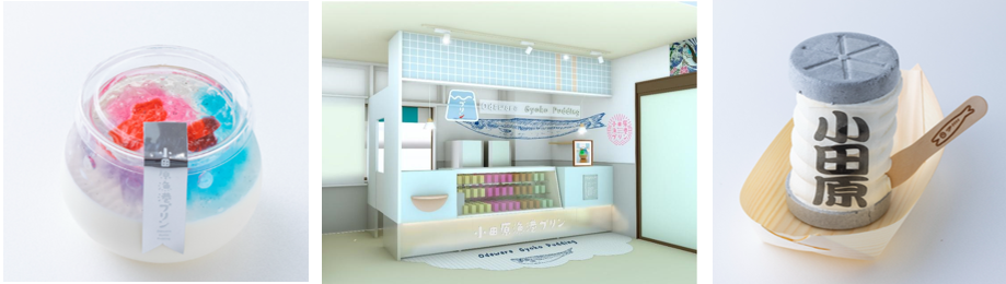 小田原漁港布丁致力於將小田原的魚鮮魅力發揚光大,已經於2021年7月31日起,向外公開,開放商品販售。小田原漁港所位於的複合設施「漁港車站TOTOCO小田原」坐落於港口旁,可以直接從建築物中,向外遠眺相模灣。相模灣又被稱為漁獲的寶庫,其中最具代表性的魚類莫過於「梭魚」,肉質相當鮮美,深受小田原居民所喜愛。店內的招牌商品除了布丁以外,還包含卡士達布丁、草莓布丁、足柄茶布丁、檸檬冰淇淋和小田原提燈冰淇淋斗。以下將一一介紹各商品的特色。