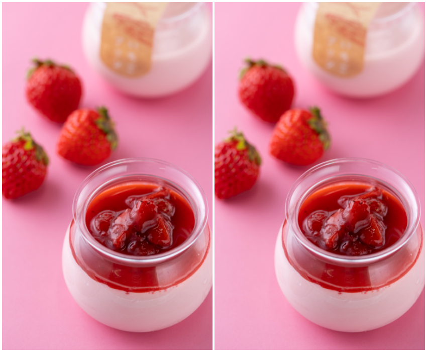 在布丁上方不只淋了濃郁的草莓果醬,也加了不少草莓果肉,草莓控不可錯過的一道甜品。價格420日幣,含稅。