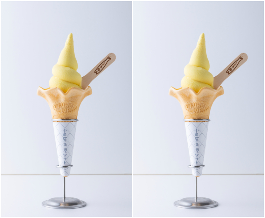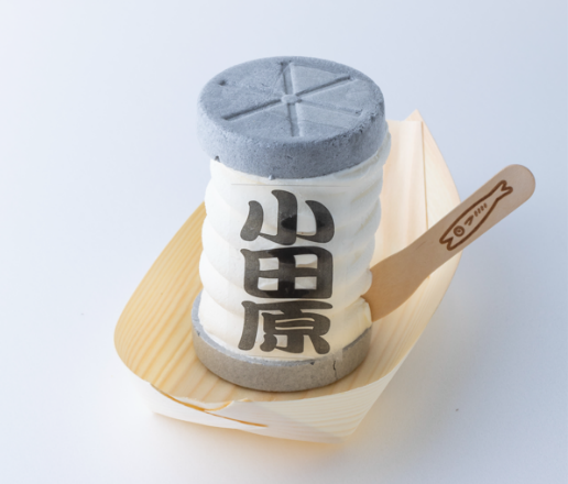 冰淇淋本身並不特別,特別的是上面額外放上的「最中餅」。小田原城造型的最中餅為當地最中工房「小田原種秀」所製作。價格390日幣,含稅。