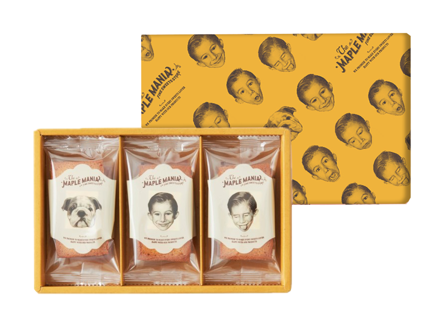 「The Maple Mania楓糖男孩」的品牌背景設定於美國古老而美好的時代,在那個時代中成長的主角楓糖男孩,最喜歡惡作劇及楓糖甜點,因此「The Maple Mania楓糖男孩」主打每一項甜點都必須蘊含著那份玩心、童年冒險情懷、以及惡作劇的小心思;包裝也同樣採用經典的復古美式風格,簡約溫暖且生動活潑,除了有男孩各式各樣的表情之外,偶爾還穿插著狗狗的圖樣,就是希望大家在品嚐的時候,都能透過濃濃的楓糖甜蜜,憶起童年的歡欣喜悅。