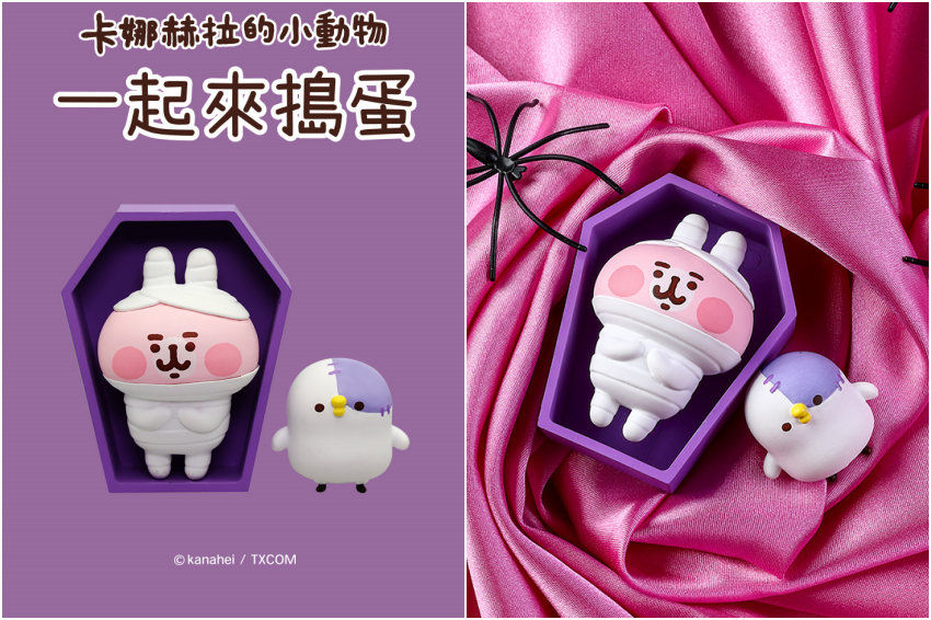 一年一度的萬聖節即將到來,日本人氣插畫人物「卡娜赫拉的小動物」當中,最有人氣的粉紅兔兔和P助即將化為木乃伊、科學怪人和幽靈等經典角色,要在辦公桌上對你大喊「Trick or Treat」,讓每天一成不變的上班生活染上有點驚悚卻又超可愛的色彩,趕緊來看看這次的公仔有什麼造型,每一款萌到錯過都很可惜呀!