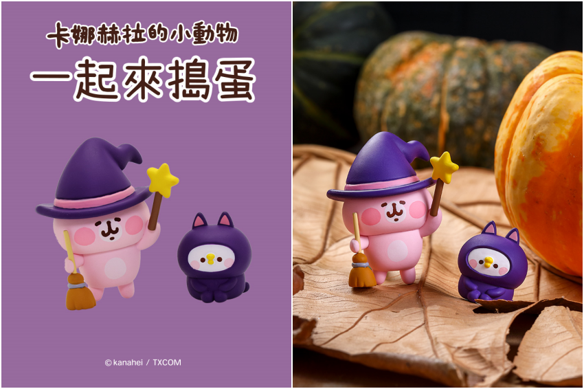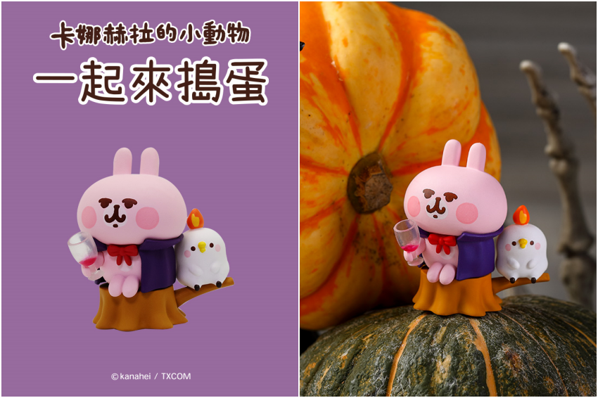 現代人生活忙碌、壓力也大,每天坐在辦公室的上班族,經常有開不完的會和做不完的簡報,因此來自日本許多可愛的動畫人物公仔,就變成為不少人忙碌日常中的一盞明燈,只要在疲憊的時候,看看它們幾眼,縱使只有幾秒也好,感覺都能瞬間被充電!而超人氣插畫人物「卡娜赫拉的小動物」當中的粉紅兔兔與P助,將要化成萬聖節中各種經典角色,總共5+1款隱藏版,每款皆有P助與粉紅兔兔同時登場,可以互相搭配讓萬聖節氛圍更到位!