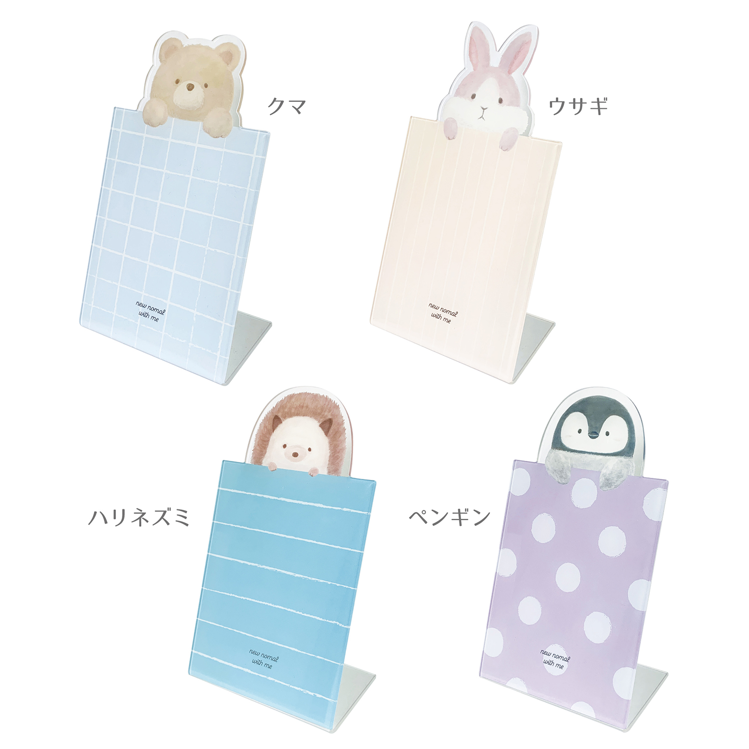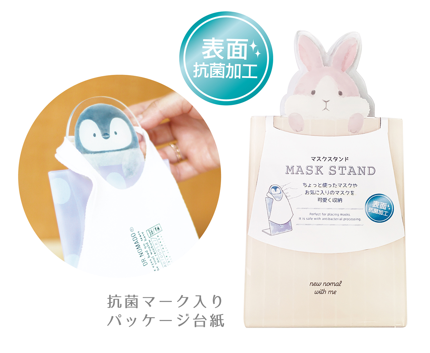 4款收納立牌分別為小熊、兔子、刺蝟及企鵝為樣式,圖案可愛、色調柔和,光是擺在桌上就非常賞心悅目了!且為了防疫關係,立牌表面經抗菌加工處理,讓人在放置口罩時更安心。上班族中午在辦公室用餐時,就靠這款立牌幫你安置脫下來的口罩!
