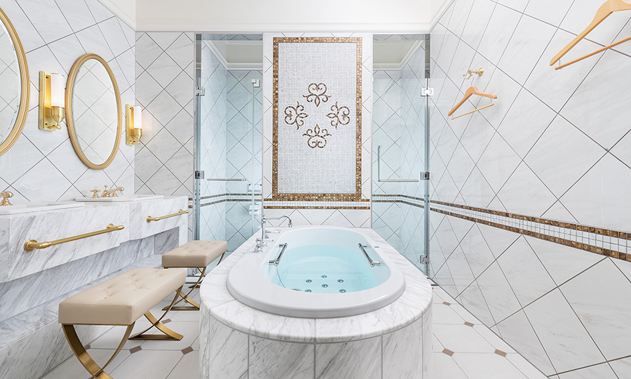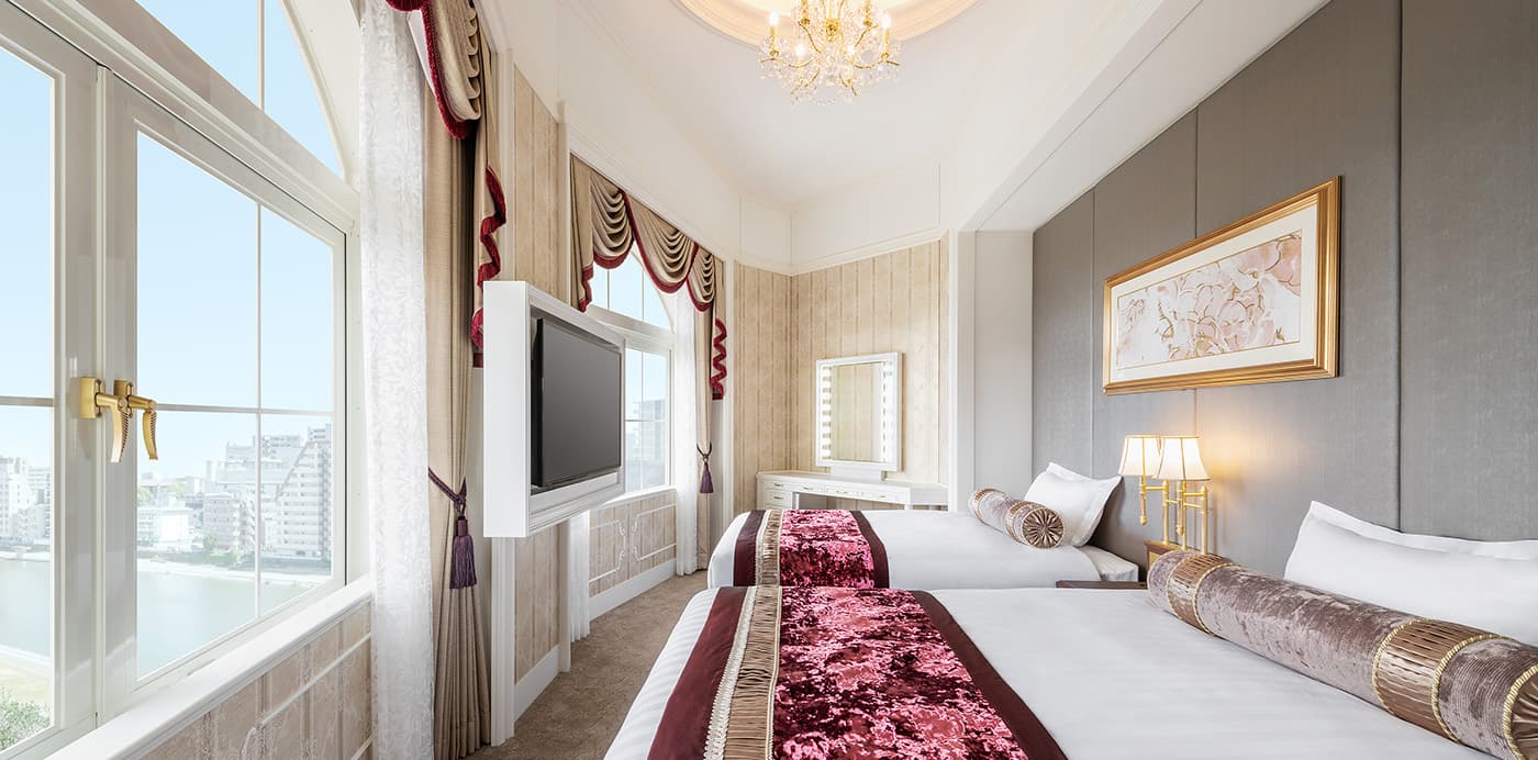 頂級套房約55平方公尺大,床的尺寸寬130公分、長195公分,房內共有2張床,浴廁乾溼分離。官方推薦一次可以住1~2人。豪華套房全飯店共2間。獨自1人和2名一起住都是一晚121,000日幣。當然,推特KOL提到的皇室級浮誇浴缸就在這間套房裡。如果負擔不起頂級套房,底下將接著介紹一般的房型。