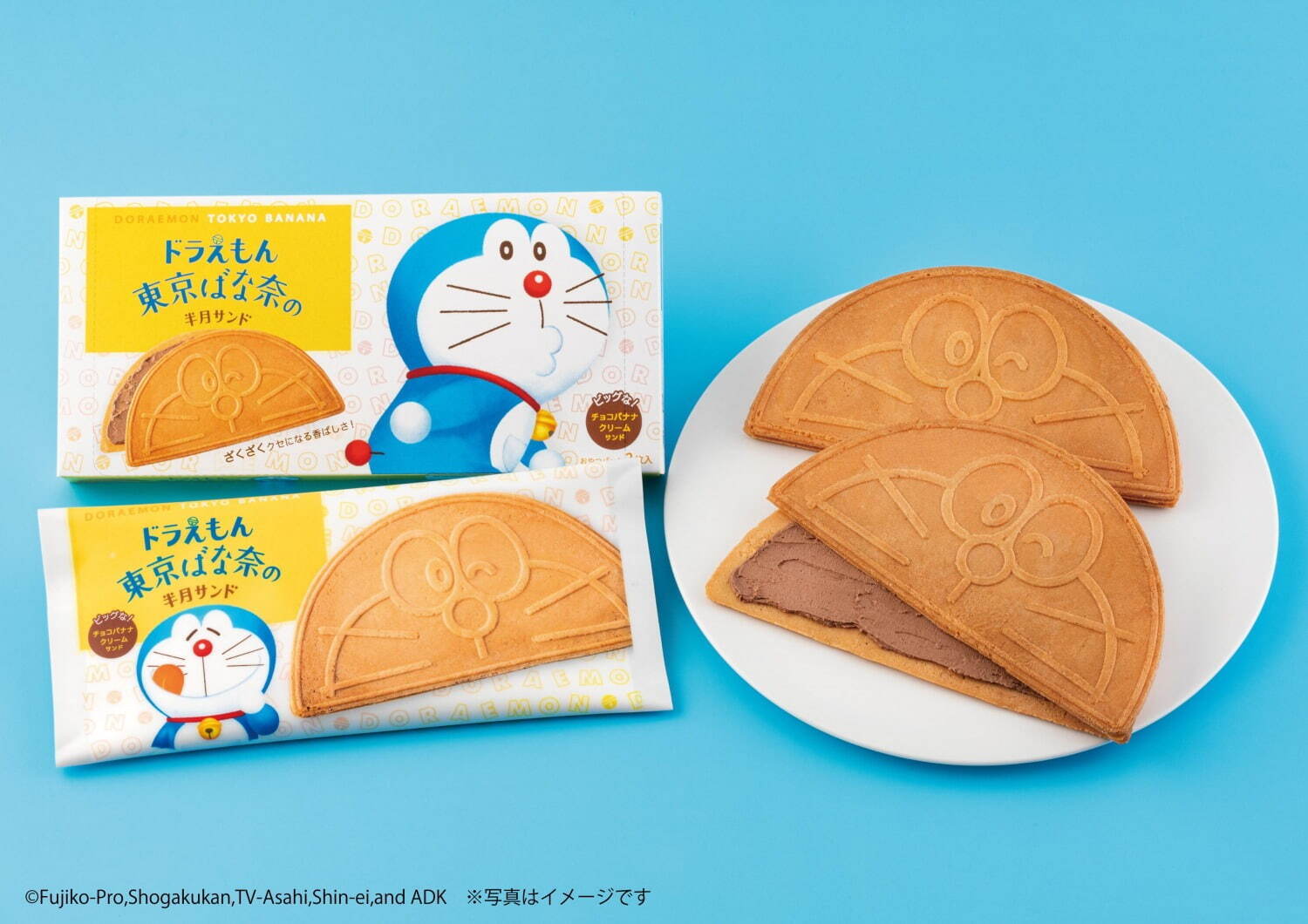 日本超熱銷伴手禮「東京芭娜娜」發售至今迎來了30周年,而圈粉無數的哆啦A夢則是誕生了50年,本次強勢聯手,共創夢寐以求的「哆啦A夢 東京芭娜娜(ドラえもん 東京ばな奈)」甜點,第一彈免不了為哆啦A夢圖樣的東京芭娜娜,這次迎來的第二彈為「哆啦A夢 東京芭娜娜半月夾心餅(ドラえもん 東京ばな奈の半月サンド)」,雙面印有眨眼的逗趣哆啦A夢餅乾可愛到讓人捨不得吃!