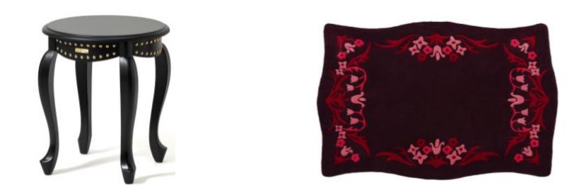 茶几39,000日幣,地毯35,000日幣。茶几最特別的地方在於桌腳。桌腳並不是單調的直線,而是採用中世紀宮廷的設計,由上到下呈現出花苞般的曲線,適合放在床頭。地毯的尺寸約140×200公分。