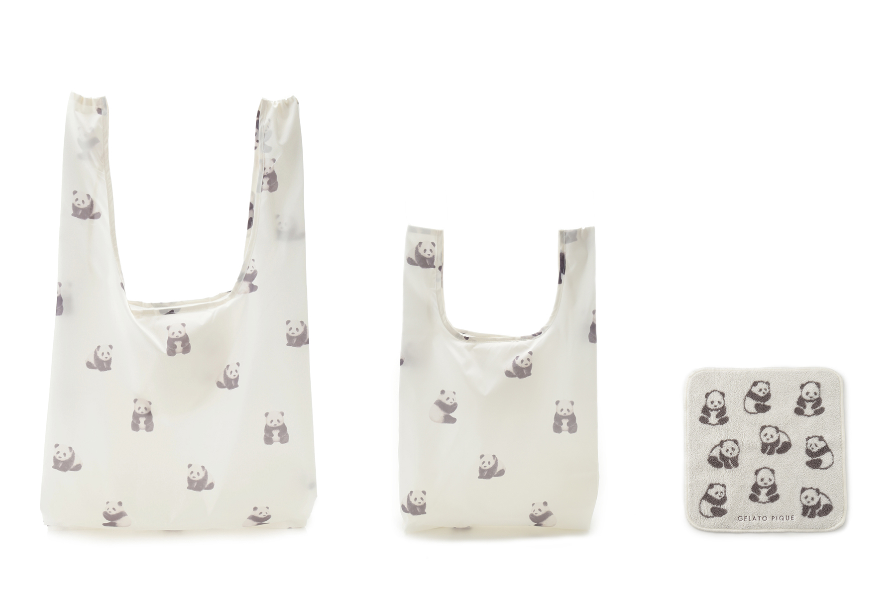 本次「everyday PANDA!」的活動,也同步規劃了一系列的熊貓周邊商品,馬克杯﹑手帕、環保購物袋都印上了呆萌的熊貓圖案,送禮自用兩相宜。現在於日本gelato pique cafe 店鋪、網路商店都能購買。