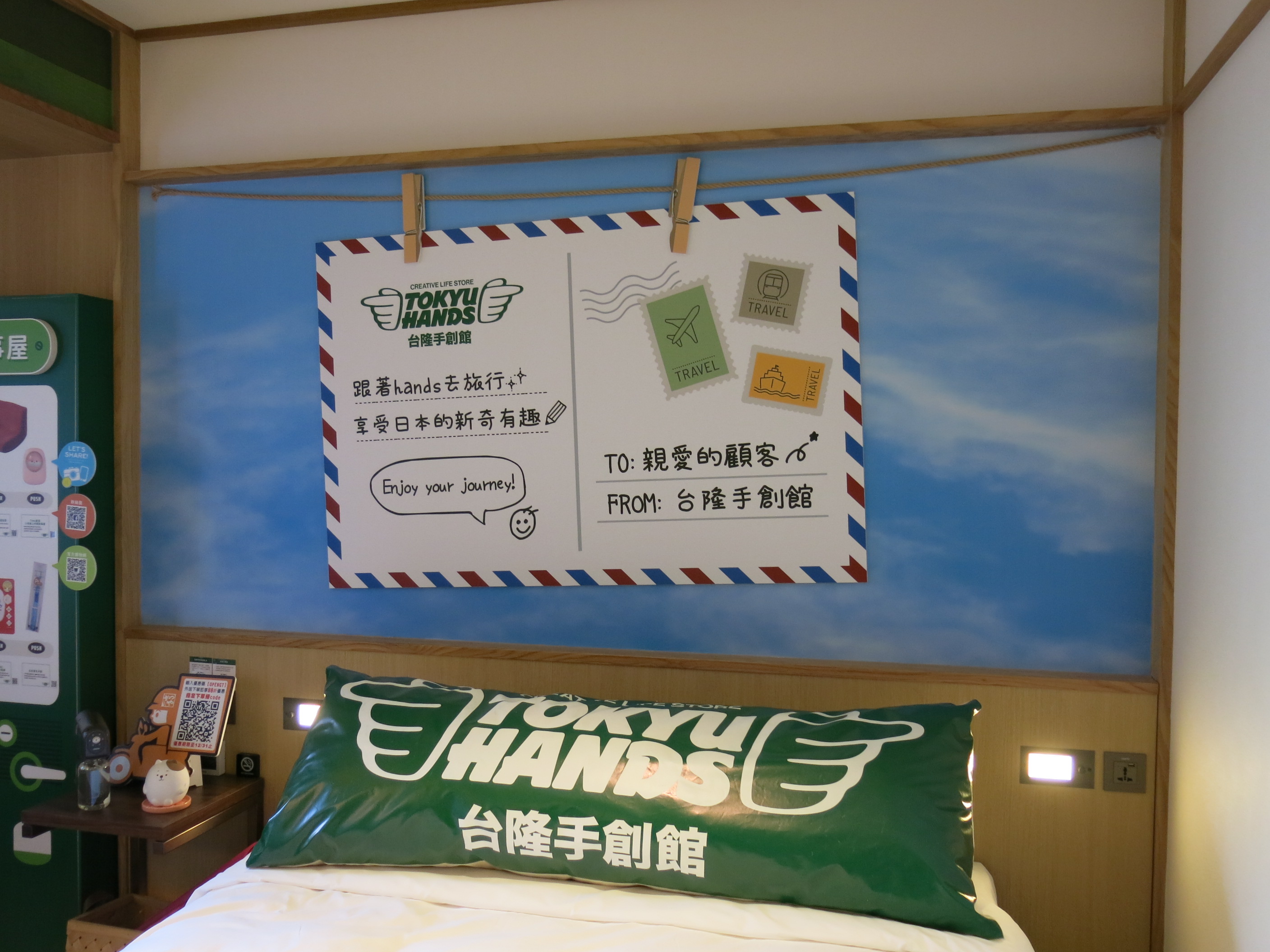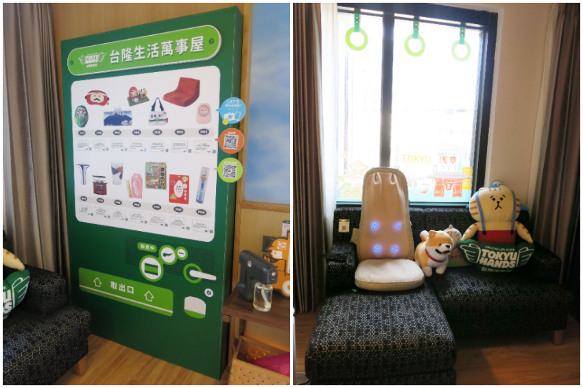 在「跟著HANDS去旅行」主題房中可以看到大家都很熟悉的台隆手創館LOGO,除此之外在房內到處都能體驗台隆手創館所販售的機能商品,包括按摩坐墊以及蓮蓬頭等;如果使用後對商品有興趣的話,還可以直接掃瞄房內販賣機上的QR CODE就可以線上購買。