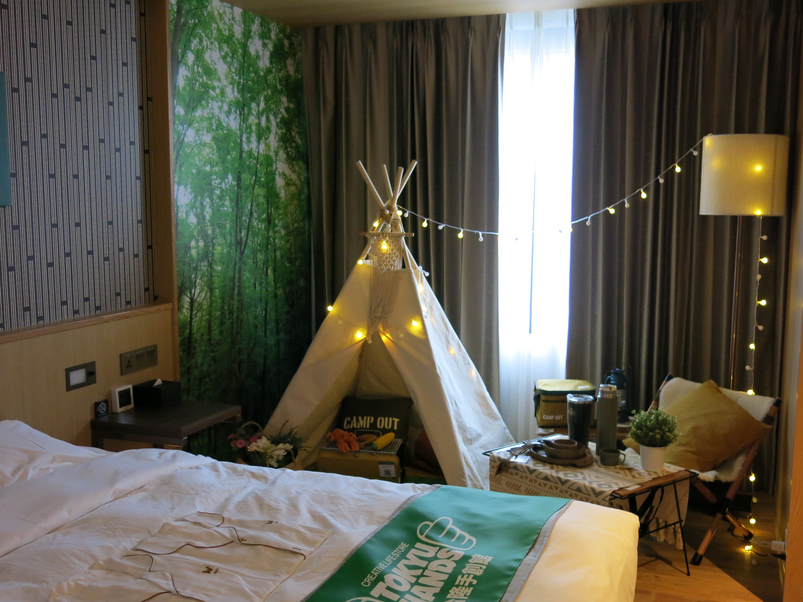 即使住在飯店也能有露營的FU!房內以日本戶外用品知名品牌的帳篷和戶外桌椅等元素佈置,營造出露營的有趣氛圍,想要體驗露營又不想弄得很狼狽的話,不妨來這裡享受另類的露營樂趣!