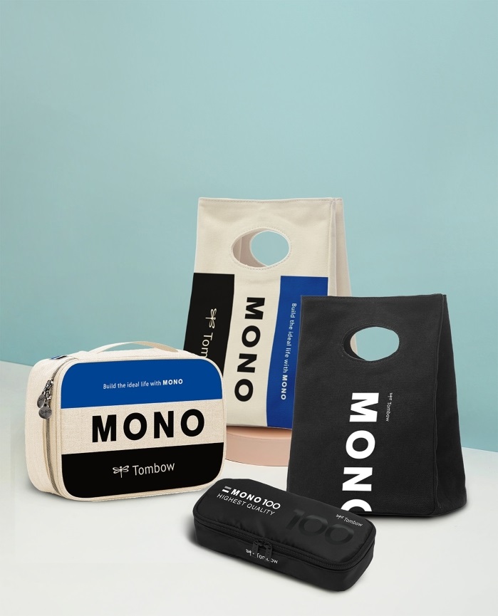 Tombow蜻蜓牌橡皮擦「MONO」是不少人學生時期的懷舊回憶,雖然在日本已經是經典老牌文具,但點子卻不斷創新!Tombow特別推出放大版橡皮擦造型帆布收納袋,大容量搭配彈性網內袋,不論是文具、3C還是旅行用品都能整齊分類;還有印上經典藍白黑三色圖騰的帆布手提袋,一體式把手設計,讓最愛的橡皮擦以不同形式繼續陪伴民眾長大。