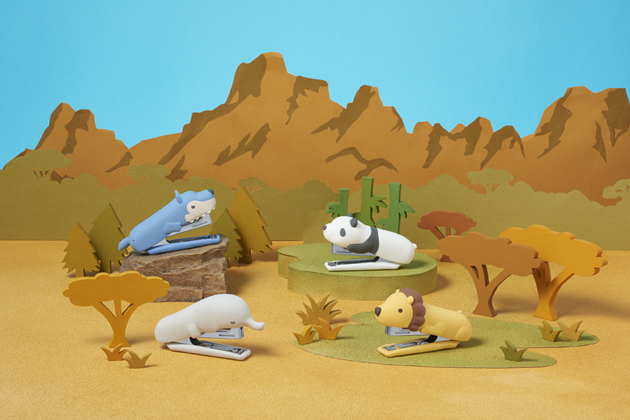 日本文具事務用品品牌MAX推出動物系列釘書機,剛硬的釘書機有了獅子、野狼、熊貓等叢林動物外皮,看著獅子一大口咬下紙張的模樣,超級卡哇伊。